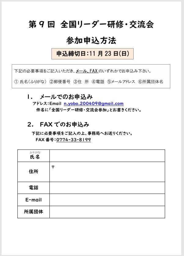 申 込 方 法 メールで必要事項を記載しお申し込みください。